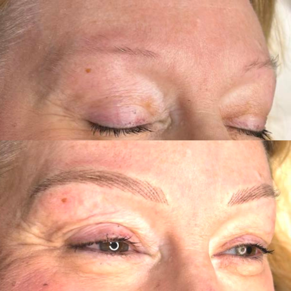 Hair Stroke Brows uses fine, hair-like strokes to mimic natural brow hairs and fill in sparse areas. This semi-permanent technique creates a fuller, natural-looking brow that blends seamlessly with existing hairs. Results typically last 1–3 years, with touch-ups recommended to maintain shape and color.